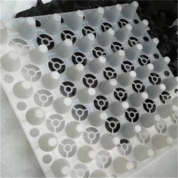 排水板系统是一种因设计手法不同而可获得不同功能的保护系统,保护系统的安装施工根据具体项目的设计要求进行,但仍属于便于安装的系统。板材长边设有专用扣合搭接带或焊接带,板材的拼接可分别采用单排扣合搭接,双排扣合搭接,双焊缝焊接的方式。排水板在铺设时边与边右搭接下来1-2支点,也可以两块底板碰齐,只要保持没有泥土进入排水板的排水通道就可以,保持排水畅通。