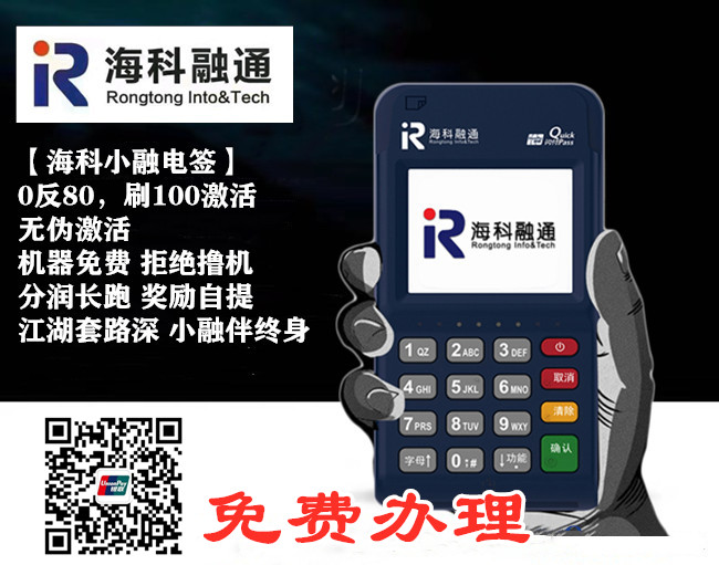 海科融通小融电签POS机国资品牌,信誉保证,所以它的安全品质是毋庸置疑的。