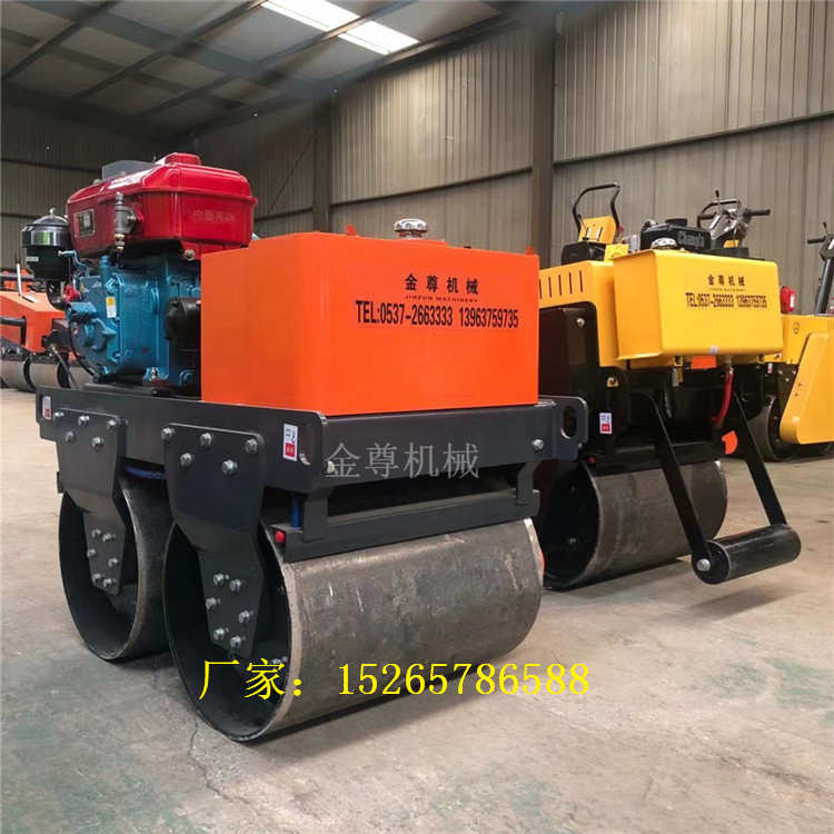 宣土碎石双轮轧实机 手扶式汽油压道机 停车场地面压地机产品名称:双轮振动压路机