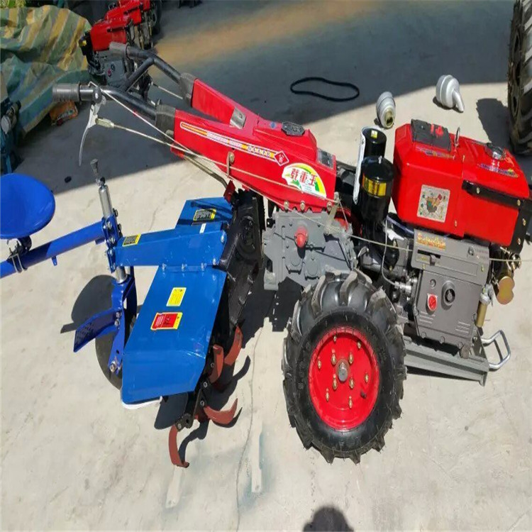 注意转向的问题。一是起步时尽量不转向;二是在平路或上坡路行驶,需要向某侧转向时,握紧该侧的转向手把,该侧转向离合器分离,切断该侧的驱动力,该侧车轮的转速低于另一侧车轮的转速,拖拉机就能实现顺利转向;三是下坡时的转向问题。需要向某侧转向时,则应握紧另一侧的转向手把,称之为“反转向”;四是减油门时的情况与下坡时基本相似,应尽量避免转向。