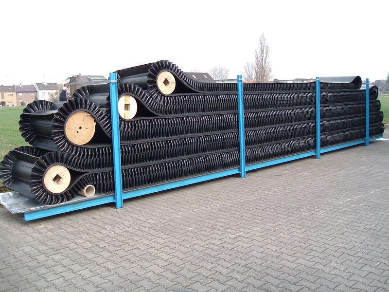 大倾角输送带被广泛应用于港口、冶金、矿山、电力、铸造、建材、粮食、化工等领域物料的输送。能使各种散装物料以0-90度做任意倾角连续输送,具有输送倾角大、使用范围广、占地面积小、无转折点、减少土建投资、维护费用低、输送量大等特点,解决了普通输送带或花纹输送带所不能达到的输送角度。波状挡边输送带可根据要求设计成一套完整输送系统,避免了间断输送和复杂输送的提升系统的繁复性。