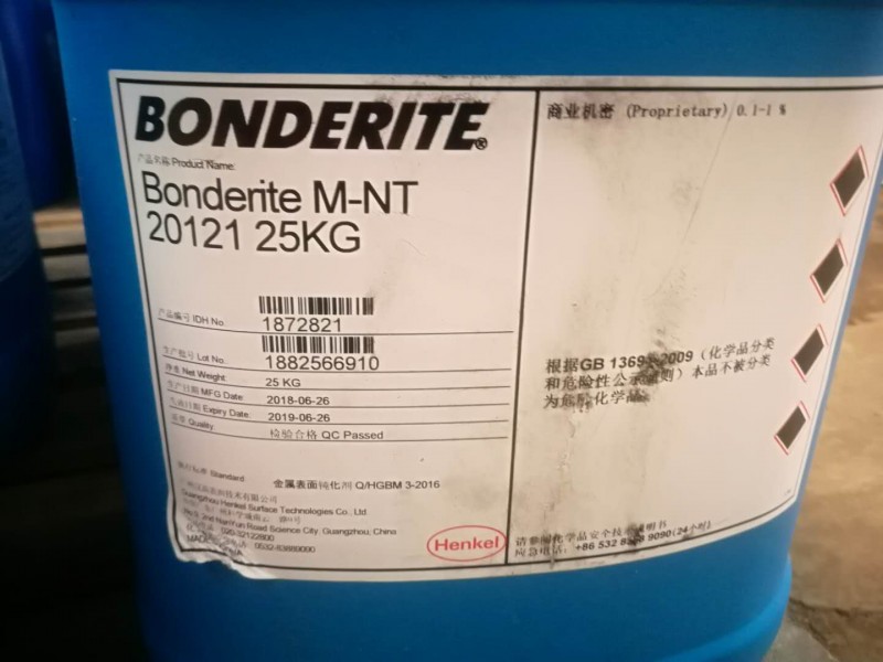 Bonderite M-NT 20121 是一种无磷酸盐的反应型前处理化学品,特别适合于钢铁、锌和铝表面处理。不 含有挥发性有机物,能增强涂装的结合力和耐腐蚀性能。 Bonderite M-NT-20121 的配方经过特别设计,可抑制工件返锈 Bondeirte M-NT 20121 原液不会产生浑浊,有效期长达 2 年 Bonderite M-NT 20121 的耐腐蚀性能大于等于铁系磷化/聚合物封闭加无铬后水洗。适用于室温下,喷 淋或浸泡处理工艺,处理后用去离子水洗。Bonderite M-NT 20121 能和各种型号的涂料匹配。