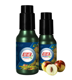 ③膨果期喷施本品可加快果实的细胞分裂速度,果实均匀,密度增加,褪青发白,着色快,提高含糖量,降低菌原基数,有效预防生长期落叶和枣锈病、炭疽病、缩果病、枣疯病等现象的发生,提高果实等级,提前上市7-15天,有效增加产量35%以上。