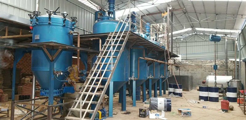 该设备由一个脱水罐;一个脱胶罐;一个脱色罐和一个叶片过滤机组成,全部采用1公分钢板制造,用电或者燃烧机加热均可,5吨的设备24小时能处理液压油、机械油、齿轮油、变压器油、毛油、减一线、减二线、减三线、布油、150、250、350等油品中的任何一种油20吨以上。出油率高达96%以上,颜色为水白色,永不氧化。