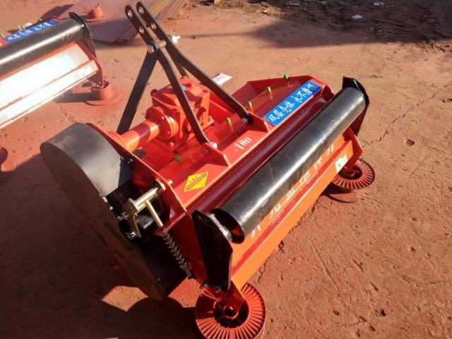 HT-90系列甩刀式割草机,又名秸秆还田机打草机。可以把玉米秸秆,牧草,土豆(马铃薯)秧,地瓜(红薯)秧等打碎散落到地表面。一种与四轮配套的秸秆还田机,包括用于作为整体支撑的大架和位于大架上的用于四轮拖拉机连接的连接架,大架上有变速箱,变速箱通过花键连接轴与四轮拖拉机的万向连轴器连接,变速箱的输出连接转动轴,转动轴上设置有若干锯盘,锯盘之间设置有与转动轴平行的横刀片,本发明利用将横向秸秆切断的锯盘和将纵向秸秆切碎的横刀片,可将秸秆彻底粉碎还田。