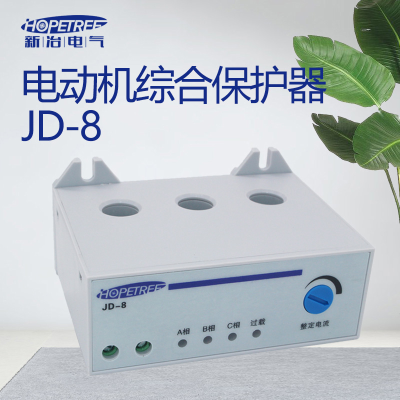 JD-8系列电动机保护器(以下简称保护器),适用于交流50Hz、额定绝缘电压AC690V以下、额定工作电流0.5A~80A的长期或间断工作的交流电动机的过载和断相保护。保护器一般与交流接触器配合使用。