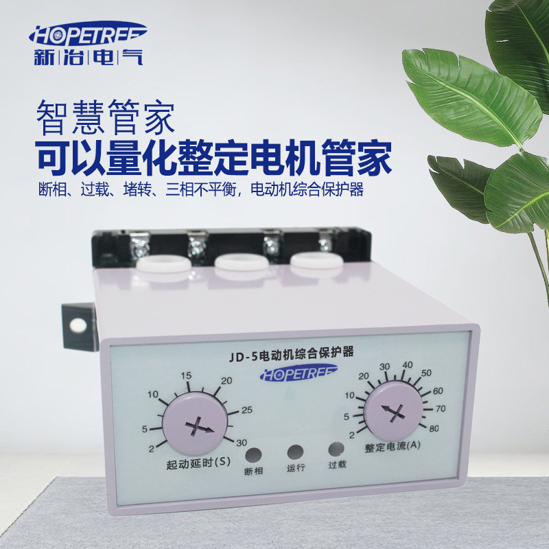 JD-5系列电动机保护器(以下简称保护器),适用于交流50Hz、额定绝缘电压AC690V以下、额定工作电流0.5A~200A的长期或间断工作的交流电动机的过载、堵转、断相及三相不平衡保护。保护器一般与交流接触器配合使用。