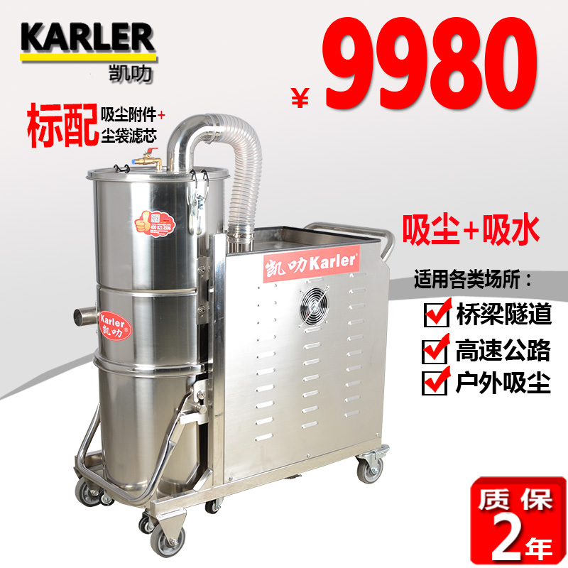 | 配置说明: 1.多折式高效过滤器,可过滤 0.3μm 超细粉尘,可水洗、(配有反吹功能)。 2.下卸式 50 升不锈钢集尘桶,方便快速清理垃圾。 3.配有旋风分离器,可实现长时间工作过滤器不堵塞。 4.交直流两种工作模式,可有效延长工作的时间。 5.直流工作时间长达 2.5 小时、充电时长 6 小时。 6.可轻松吸取一元,黄豆、花生、小石子等。 7.适应行业:大型工厂学校、车间、广场、郊外、冶金、煤矿、电子厂、地下车库、没有交流电的地方等。 KL-50AD电瓶工业吸尘器适用于地面灰尘和污水的清理,用于大型的工厂,室外广场等大型场所而电源又不方便的地方. |