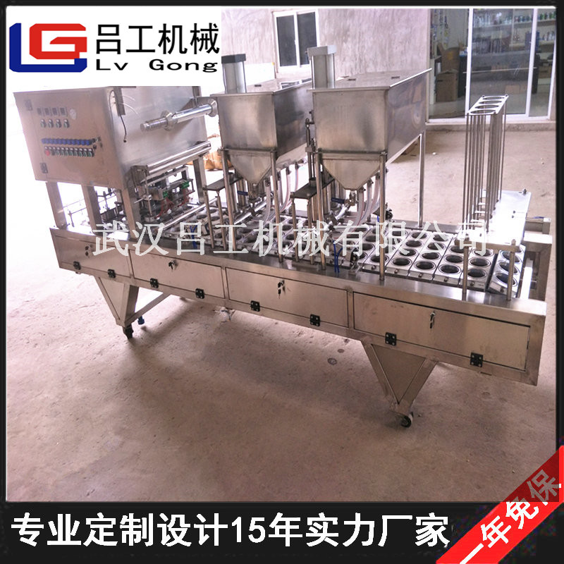 适用于各种酸奶、果冻饮料等产品的生产,能自动完成塑(纸)杯的自动落杯、填充、灌装、卷膜封切、两道热封等功能。整机采用日本欧母龙可编程逻辑控制器、台湾气动控制元件、智能数显温度控制系统,具有封口强度高,密封性好,故障率低等特点,是企业自动化生产的产品。