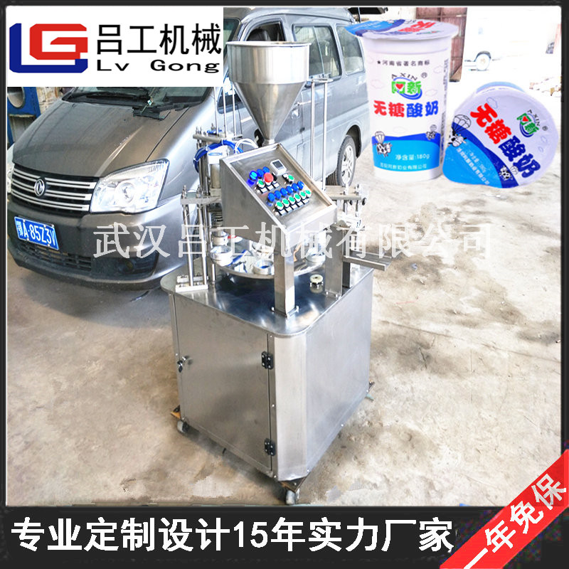 圆盘式塑料杯封口机 旋转式杯装酸奶牛奶灌装封口机设备厂家本公司生产的全自动圆盘式灌装封口机具有操作简便,性能稳定,易于维护保养.既可以单机使用,也可接入生产流水线使用。