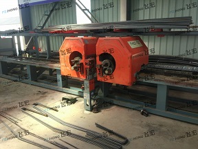 该设备两个机头可自动移动,自动化程度高,由进口伺服电机及电控系统控制,生产效率高。配备自动储料架,自动移动钢筋原料,承载能力强,大大降低工人劳动强度。