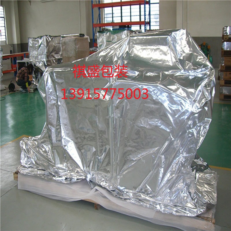 防潮真空袋1. 结构组成:耐高温层/铝箔(真空镀铝)/粘接层/纤维增强层/热合层 2. 防潮袋产品厚度:10—22丝 3. 产品规格:幅宽980mm—1500mm,250m/卷 4. 防潮袋性能特点:卓越的防潮、隔氧、防锈、遮光、屏蔽、抗静电、抗撕裂、抗穿刺、抗挤压性能,可抽真空,外观亮泽,彩印效果佳。 5. 防潮袋适用范围:因其内含增强层,可防止棱角或不规则突起的穿刺其外观华丽亮泽,能提高产品包装档次、体现产品品质。 6. 防潮袋应用范例:机械包装协会、军品包装办公室推广联合项目,已用于海军青岛、旅顺、舟山、上海……等七大基地的舰载系统的包装及机床、纺机、高压开关、钢丝绳、重型机械……等的出口包装。