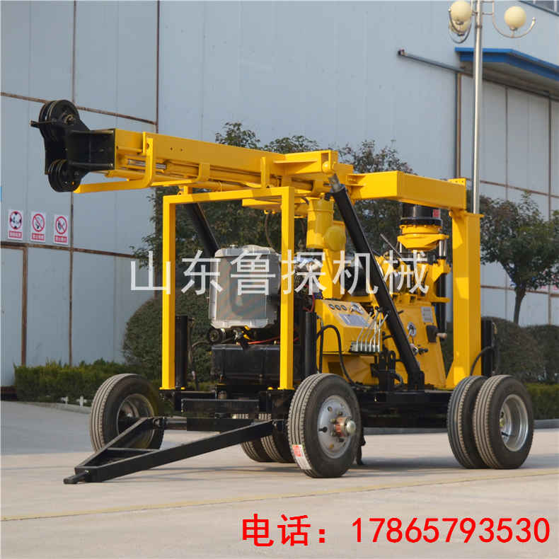 1、该钻机装有轮式行走机构及液压油缸支柱,整机搬迁方便,便于钻机的水平调整。