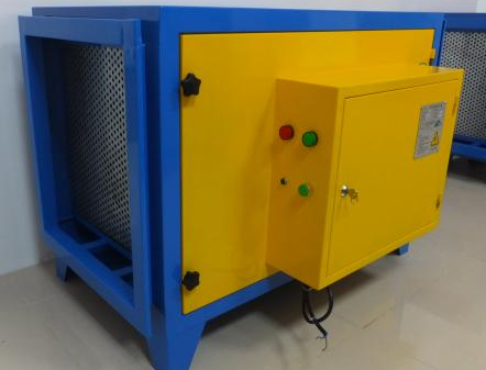 油烟由风机吸入油烟净化器,其中部分较大的油雾滴、油污颗粒在均流板上由于机械碰撞、阻留而被捕集。当气流进入高压静电场时,在高压电场的作用下,油烟气体电离,油雾荷电,大部分得以降解炭化;少部分微小油粒在吸附电场的电场力及气流作用下向电场的正负极板运动被收集在极板上并在自身重力的作用下流到集油盘,经排油通道排出,余下的微米级油雾被电场降解,最终排出洁净空气;同时在高压发生器的作用下,电场内空气产生臭氧,除去了烟气中大部分的气味。