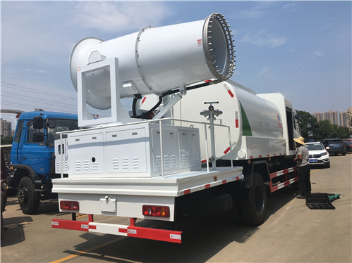 雾炮车构造: 雾炮车配套设施为一台式轴流风机、AOTU牌高压离心泵、角度的液压油缸、水平及电控,喷头采用意大利合金不锈钢材料,由风机所的高速空气携带喷雾产生的水雾向空气中时,由于水雾颗粒、与空气中的尘埃迅速,并形成一种雾状体,加重尘埃自重,加快尘埃沉降,从而抑制尘埃扩散。