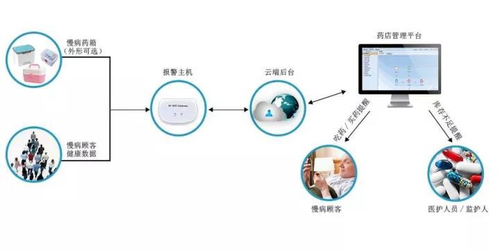 慢病云药箱方案为药店提供了一个良好的病人管理平台,当病人忘记服药时,病人家中的主机会语音提示病人“服药时间已到”,药店管理人员也能人工远程提醒病人服药;当病人的慢病云药箱中药品存量不足时,管理人员能提醒病人及时添购药物,促进药品的流通。
