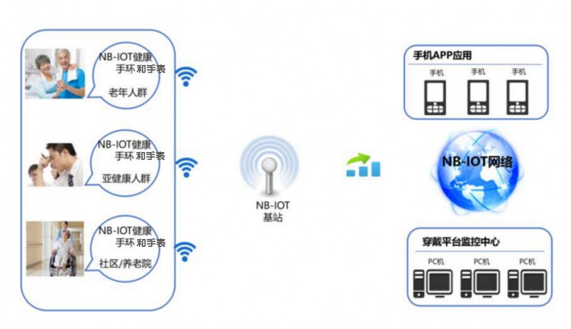 1.配置简化:NB-IoT穿戴设备无须手机连接,佩戴使用简单,自动联网