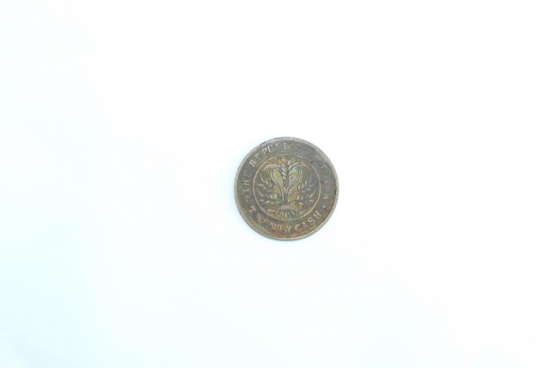 此枚“湖南省造双旗币”钱币正面中央图案为“十九星铁血旗”和“五色国旗”交叉而立、旗后有缨带,双旗寓意全国一统与民族大团结;钱币正面圈外上部署湖南省造基地;左右饰以团菊花纹;下方则镌“当制錢二十文”标明币值。钱币背面正中图案则为稻穗组成嘉禾纹,寓意丰民足岁;背面上部镌“THE REPUBLIC OF CHINA”;下方则镌“TWENTY CASH”。其币保存完整,包浆完美,值得珍藏。