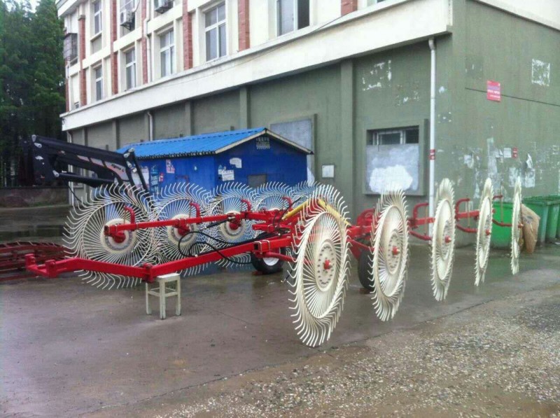 搂草机全部为牵引式,由一种灵活且耐用的机架组成,该机架适用于任何类型的土地,甚至包括极不平坦的土地或斜坡。轮子是构成搂草机的主要元件。每只轮子相互独立,包含可以减轻轮子震动的减震弹簧,使轮子完美地贴在地面。搂草机可与拖拉机连接以便于作业。机械臂和齿轮由液压动力驱动,而整个搂草机由所连接的拖拉机进行牵引。产品凭借优良的品质进入北美,欧洲,非洲,澳大利亚,俄罗斯等国家和地区,为全球农业做出了积极的贡献.