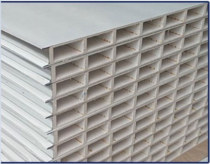 中空玻镁净化板内胶粘玻镁隔板,两面采用钢板,两边采用冷拉型材框架封边胶合成型。