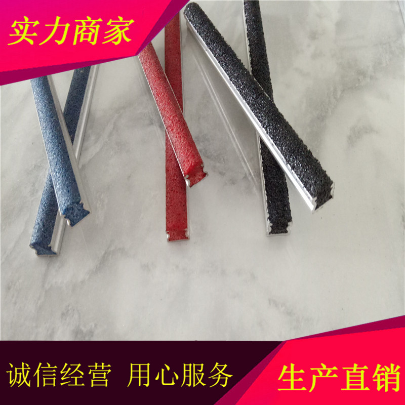 泉州金刚砂防滑条耐磨牢固不变形采用高强度铝合金型材作为框架,在铝合金凹槽内填充金刚砂防滑条。其颜色可做成多种多样,产品牢固、精美。