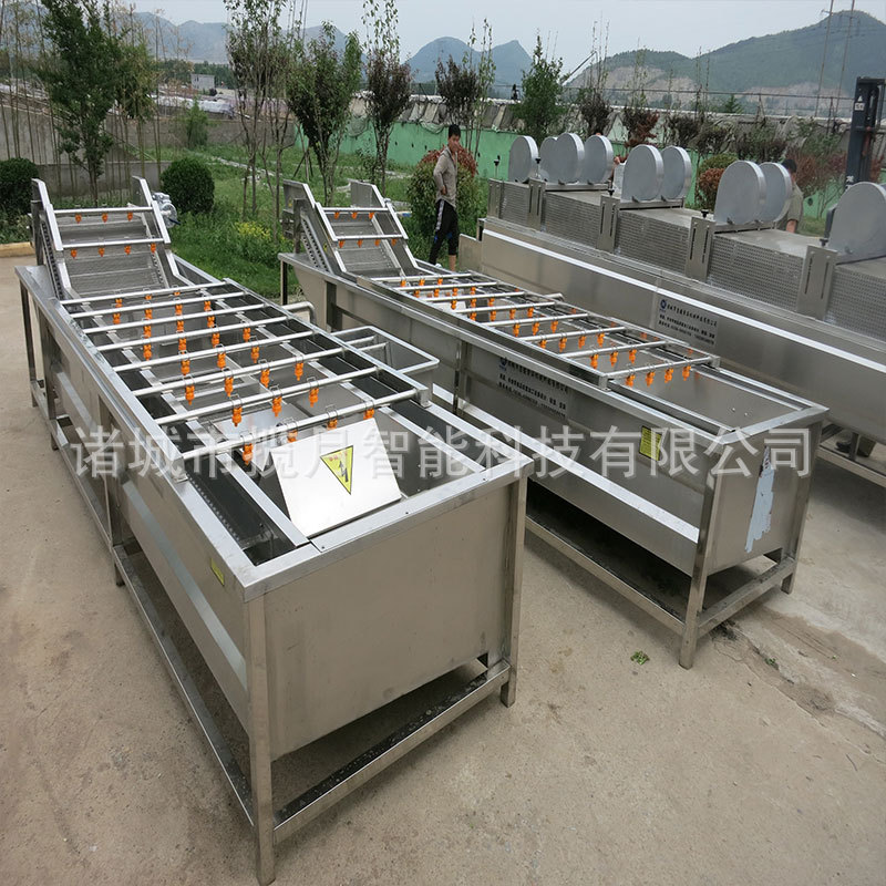 整机采用不锈钢SUS304/2B材料制作,完全符合食品加工卫生要求。设备中设有气泡发生装置,使物料呈翻滚状态,去除产品表面泥土,同时可加入适量的自降解消毒液,进行消毒处理。漂浮物可以从溢流槽溢出,沉淀物从排污口排出,以达到清洗的目的。具有洗洁净高、节能、节水、设备稳定可靠等特点。