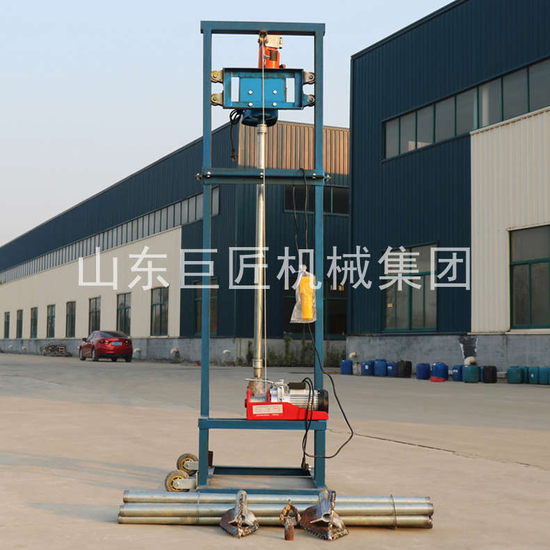 SJD-2B龙门架式小型民用电动打井机广泛应用于家庭/工厂生活用水打井、农田灌溉水井、安装水空调、工地打桩等。