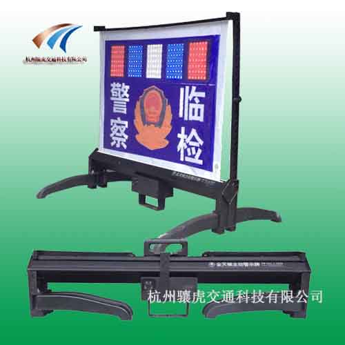 我公司生产的警察临检警示牌具有主动发光于反光功能,特别是主动示警效果突出,可是距离远,外形美观,可伸缩,操作简便,回收体积小携带方便,能有效的确保过往人员、车辆及路面工作人员的人身安全,在风沙雨天雪天大雾等恶劣气候下不影响警示效果,该产品的科技含量已达到国内领先水平。该产品广泛应用于警察临检,事故处理,路政、市政施工现场,机场港口等安全警示标志,能让各职能部门在执行工作中确保安全防护措施起到防范于未然的作用。