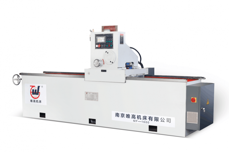 MF-1600型高精度磨刀机是吸收了德国磨刀设备和刃磨设备的精华自行设计制造的一种多用途高档磨削设备,该机主要适用于磨削各种不同尺寸,不相同角度,不同材质的大型刀片,是印刷,造纸,塑革,食品,木业,胶合板等行业必备的设备,特别是配套高档切纸机最理想的磨刀设备。本机床机身采用双层优质铁板焊接而成,其结构先进,设计合理,稳定性能好,经时效处理及精加工,保证了机床精度。该机床床身内装有电磁吸盘,一端设有蜗杆传动机构,旋转手轮可在0-90°范围内任意调整角度。床身前侧装有调节行程的行程开关挡铁,后侧装有齿条齿轮间隙调整机构。床身中配有专用电气控制箱。该机床主运动采用机械传动,左右行走采用齿轮齿条变频调速,可根据运行情况对齿轮齿条之间的进行最佳调整。该机床磨削头采用变频自动进刀,可设置总进刀量,按总进刀量进行磨削。主箱内装有升降电机可快速升降。该机床采用德国先进技术,选用优质钢材制作而成,