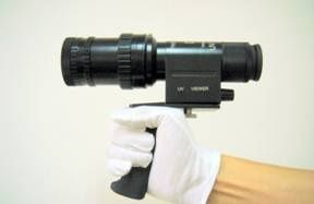荷兰DEP-100紫外观察照相系统通过超强紫外增强管的图像转换功能,使操作者直接观察到可见的指纹图像,紫外观察照相系统用于在大多数光滑,非渗透表面,对不经任何物理,化学处理的指纹或502胶熏显后的指纹进行搜索、观察,同时可利用胶卷,数字相机等对观察到的图像进行直接记录。本系统无需粉末,无需染色,无需暗室环境,甚至无需熏显等过程直接提取指纹。克服了以往短波紫外照相反射指纹不可见,不容易掌握理想的紫外光入射角度和指纹定位的局限,提高了指纹的现场提取率,是非常理想的无损现场刑事侦察工具。