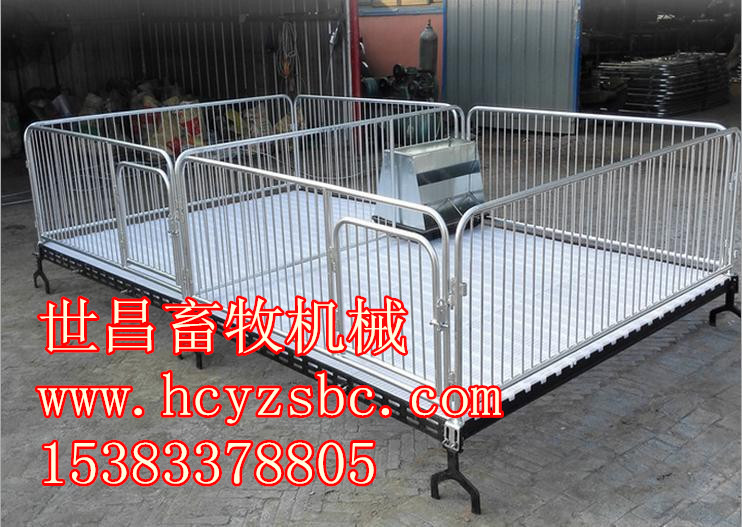 小猪保育床,主要适用于出生后一个月的仔猪,从分娩床断奶后转移到保育栏饲养。为仔猪提供一个活动的空间,更便于饲喂和管理,主要特点就是可保持高床上清洁干燥,仔猪不被粪尿污染,有效组织细菌繁殖,围栏为栅条式有利于通风和观察。仔猪保育床长度为2.2米,宽度为3.6米,高为0.7米,栅格间距不大60毫米,仔猪补料槽和饮水器都装在围栏的后部,供粪便排在后部的排粪区。网床离地面高300~400mm。它的作用是一方面可使猪脱离与低温潮湿的地面接触,另一方面猪的粪便可通过漏缝地板、粪沟保持了床面的清洁。