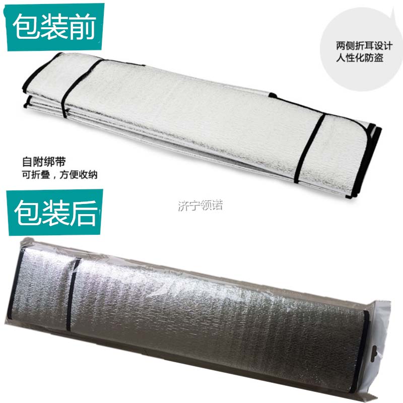 前挡为珍珠棉特殊反光材料所制成,具有100%抵挡紫外线的效果,中间制作为泡泡型,具有极好的隔热效果!可以挡住百分九十以上的紫外线及热量,让您的爱车免受阳光的煎熬.