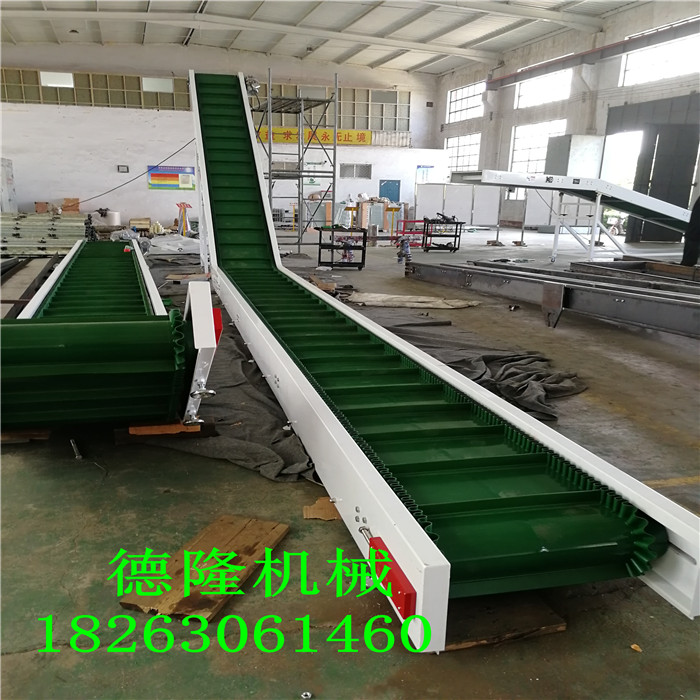 裙边挡板爬坡皮带输送机大倾角设备流水线物流德力自动化设备