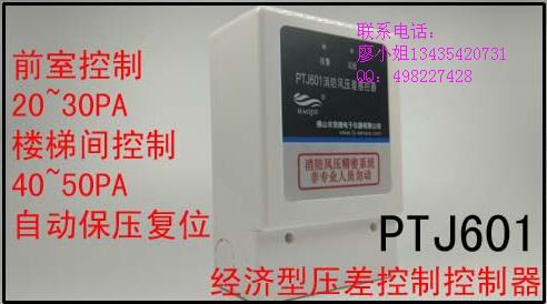 PTJ601(经济型),PTJ601G(高精度型),PTJ601X(显控一体型)用于控制前室,合用前室,消防电梯前室,封闭避难层间及楼梯间压差控制,其目的为了当发生火警危害时,竖井立即起动,往控制前室,合用前室,消防电梯前室,封闭避难层间,防烟楼梯间,封闭楼梯间增压,使得以上地域保持风压,别的区域烟与有害气体不能侵入,人有安全环境.但是也不能让当前地区风压过大影响逃生.这是最终目的.