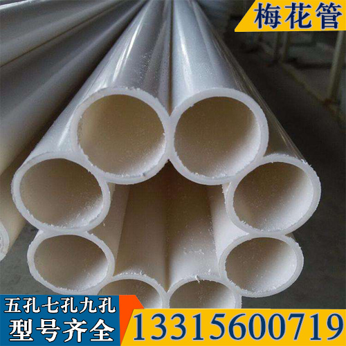 梅花管采用多孔一体结构,刚度好,受力均匀。产品内壁摩擦系数小,穿缆轻快,施工简便易行。具有多个孔位,可预留管孔,提高通信孔位利用率。梅花管使用寿命在埋深条件下大于30年以上。性能指标 管材的色泽均匀一致,颜色为白色,可根据用户要求,也可定制其他颜色。产品适用温度范围较大,在热带及寒冷地区均可使用。接头采用套接结构。管材光滑平整,色泽均匀,不允许有变形,扭曲等缺陷。内外管壁不允许有裂纹和破损、穿孔。标记应耐久易识别。毋需任何工具即可完成管子之间连接,便于施工和维护。