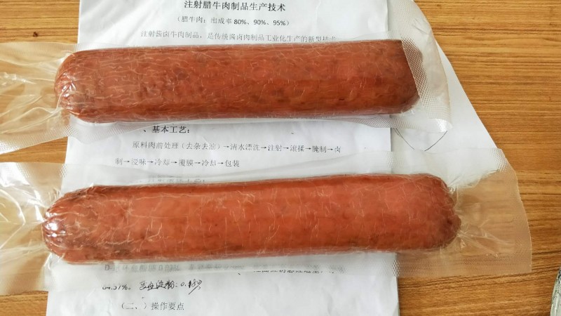 作用:在常规灌肠制品配方工艺不改变的情况下,适量添加本品制作的凝胶胶浆,可以改善灌肠凝胶结构,增强弹脆性能,改善口感,降低成本。(需调整调味及防腐剂)