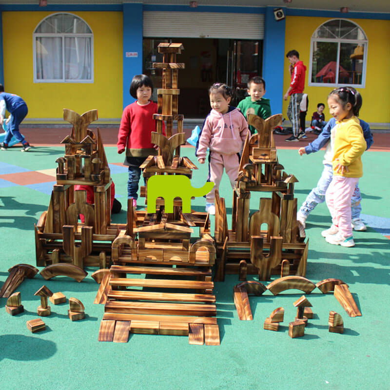 幼儿园户外大型碳化炭烧积木348片小型碳化积木