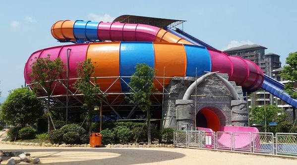 旋涡滑梯(巨兽碗)是水上乐园中最刺激、最惊险、最引人注目的项目之一,两/四名游客可以同时乘坐一皮筏从高处俯冲落下,在离心力和水的润滑作用下,游客会在池子里高速回旋,最后被吸入大碗中间的出水口,游客会享受难忘的滑行体验,尖叫声将伴随滑行的始终。