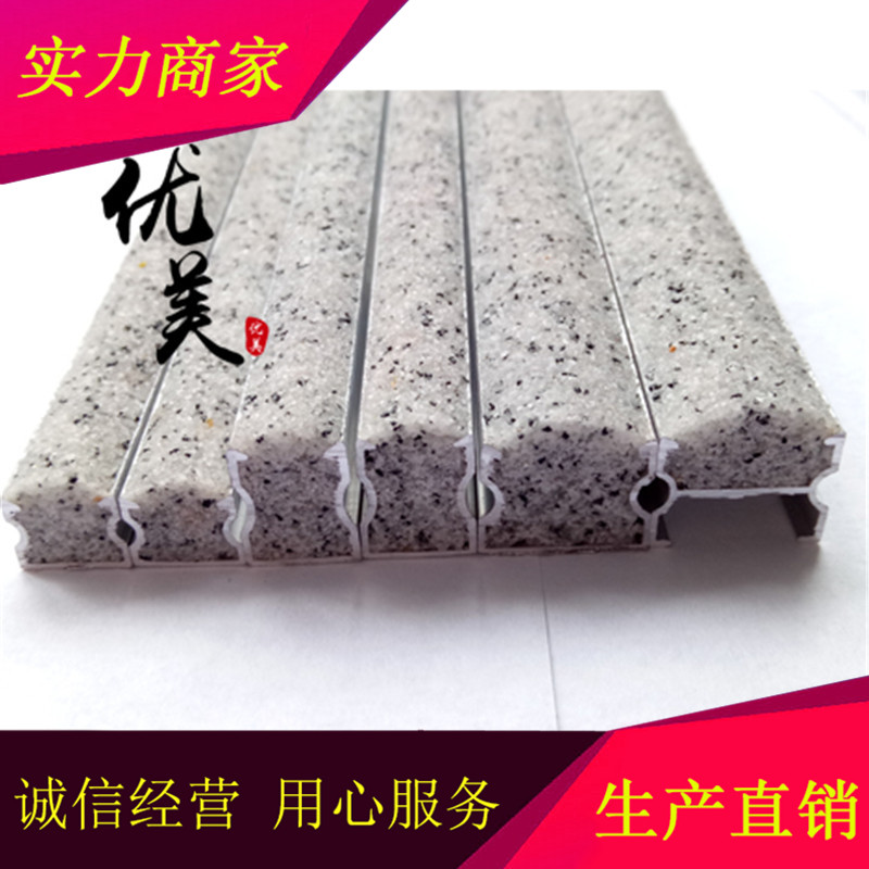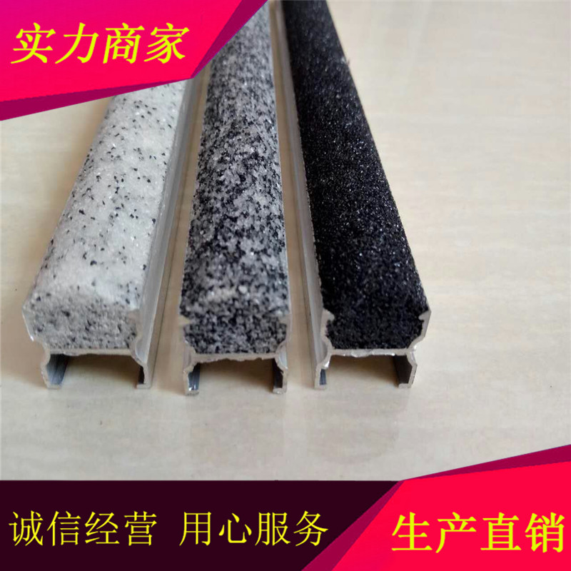 优美建材有限公司生产直销的金刚砂防滑条款式较多,金刚砂楼梯防滑条有直线式的金刚砂防滑条、L型包角型的金刚砂防滑条;金刚砂汽车坡道防滑条款式有U型槽金刚砂防滑条,铝合金H型槽金刚砂防滑条,支架均为铝合金型材,材料可以做到数米长,抗弯性能较好,软硬度适中,运输安装过程中不会断裂,使用寿命长。优美金刚砂防滑条款式多,颜色齐均可加工定制,长度也可按客户要求裁切。