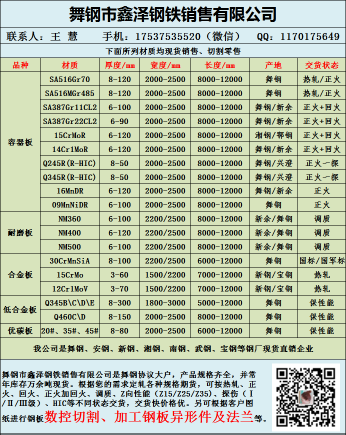 SA387Gr11CL2钢板的热处理选择正火加回火或者正火加快速冷却加回火的处理。