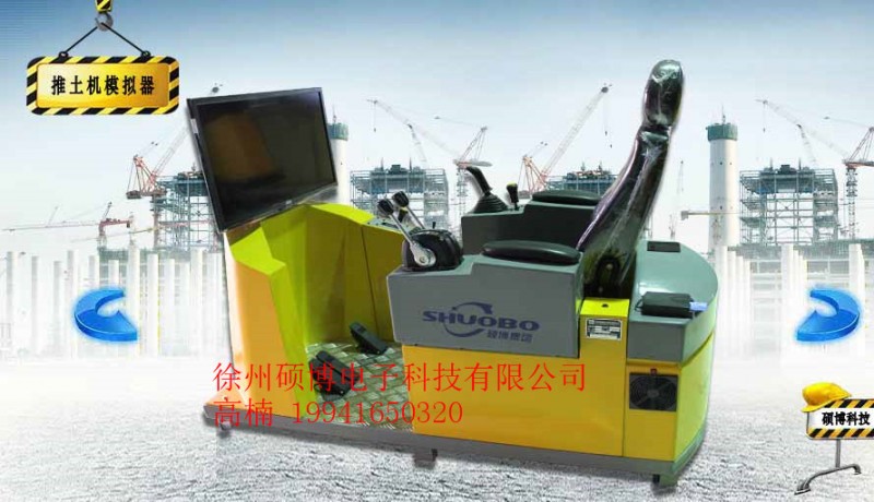 该设备硬件由设备底座、驾驶座舱、设备座椅、PC系统、视景显示器、转向控制杆、IC卡读写器、360度视角摇杆、制动踏板、减速踏板、松土器控制杆、数据采集系统及各种功能按钮等组成。设备采用与真实推土机相同的操作部件,逼真的操作手感,使得其操作功能、操作感觉与真机完全吻合;