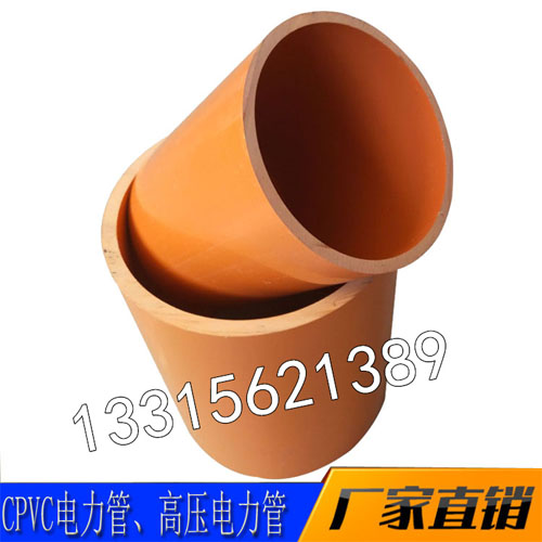 4 ,CPVC电力管|cpvc高压电力管|电力电缆护套管|强度高、阻燃、耐热、适用寿命长:CPVC高压电力管完全克服了普通PVC管耐侯 差的缺点。其强度可取代钢管并克服了钢管易腐蚀以及形成闭合磁路造成单芯电缆温度过高而损坏的现象;CPVC管材阻燃等级是FV-0级,其本身不能燃烧,离火即熄,氧指数≥40%,基本不传热,线膨胀系数为63*10-5CMCM度维卡软化温度≥93度,可在105度温度下使用;5,CPVC电力管|cpvc高压电力管|电力电缆护套管| 能价格比优越:CPVC管材比同类水泥压力管略低,比同类钢管低20%,综合造价可降低15%