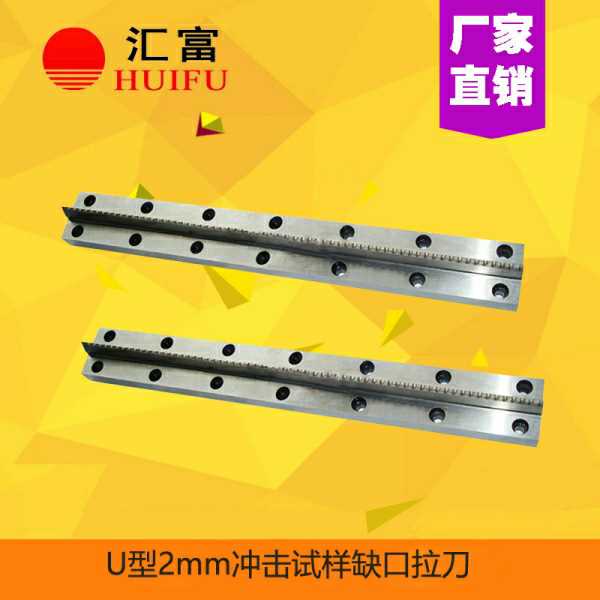 汇富冲击试样缺口拉刀是采用进口W18Cr4V材质,特殊工艺精密加工制造的高硬高粘合金不锈钢缺口拉刀,适用于各种冲击试样缺口拉床.可根据用户实际使用需求,配置V型2mm、U型2mm、U型3mm或U型5mm中的任意一种或几种,欢迎各行业用户前来洽谈合作.