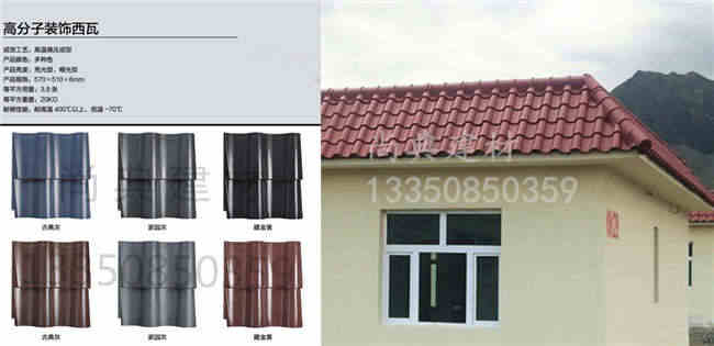 高分子瓦与传统烧结瓦相比,其安装工价可节省50%,屋架辅料可节省40%,并可以省去防水层,且终生无需维修。所以与烧结瓦、陶土瓦相比具有极高的综合性价比。