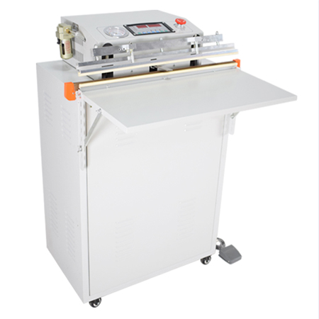 在待机状态下,打开抽气开关,抽气指示灯亮,踩下脚踏开关,程序启动,真空泵开始工作。工作完毕,封口倒计,冷切倒计,工作完毕,回到待机状态(此工作状态适用于食品、电子、医药、工具、百货等行业真空包装)