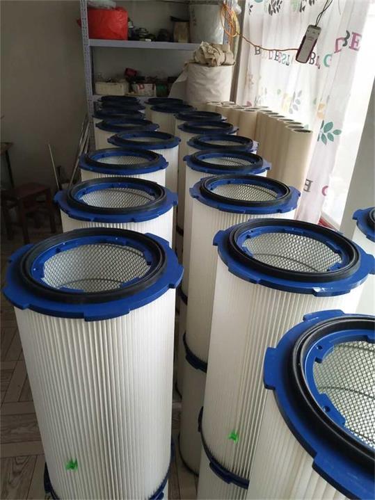 我们可根据用户的要求生产定做各种粉尘滤筒。以下是我厂生产的粉尘滤筒的详细说明: 当含尘气体进入除尘设备灰斗后,由于气流断面突然扩大,气流中一部分颗料粗大的尘粒在重力和惯性力作用下沉降下来;粒度细、密度小的尘粒进入过滤室后,通过布朗扩散和筛滤等综合效应,使粉尘沉积在滤料表面,净化后的气体透过滤筒进入上箱体的净气腔并汇集至出风口排出。特点: 1、采用垂直式滤筒结构,便于粉尘吸附及清灰;且由于在清灰时滤料的抖动较小,使滤筒的寿命大大高于滤袋,维修费用低。 2、采用目前国际上先进的离线三状态(过滤、清灰、静止)清灰方式,避免了清灰时的“再吸附”现象,使清灰彻底可靠。 3、设计有预收尘机构,不但克服了粉尘直接冲刷容易磨损滤筒的缺点,而且可以大大提高除尘设备入口处的粉尘浓度。 4、对影响主要性能的关键元件(如脉冲阀)采用高质量耐损耗元件,其易损件膜片的使用寿命超过100万次。 5、采用分列喷吹清灰技术,一个脉冲阀可同时喷吹一列(每列滤筒数量最多为12个),可大大地减少脉冲阀的数量。 6、脉冲阀三状态清灰机构采用PLC自动控制,并兼有定时或手动二种控制方式任选。 7、可根据安装空间的需要采用不同列数、行数的滤筒任意组合;单位过滤面积占用的三维空间小,可替用户节约大量空间资源,间接减少用户的一次性投资成本。 8、使用寿命长,滤筒的使用寿命可达2年,大大地减少了除尘设备更换滤芯的次数(传统布袋除尘设备平均每年更换一次),维护简单,大大降低了用户在使用过程中的维护成本。