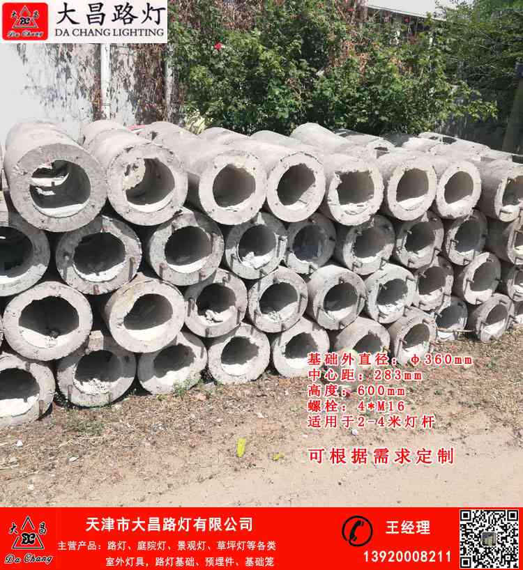 7 本厂生产的路灯基础适合2米至20米路灯、庭院灯、太阳灯、景观灯使用。