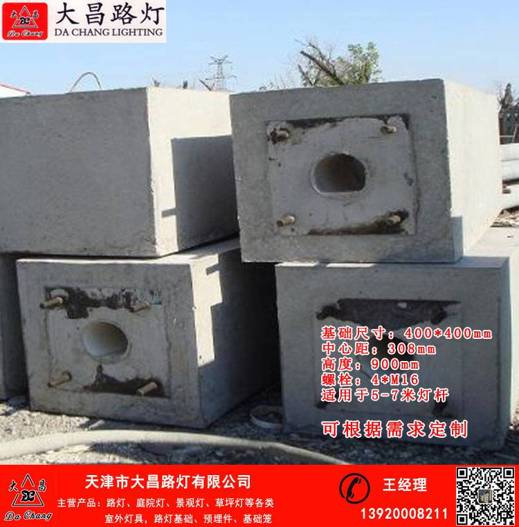7   本厂生产的路灯基础适合2米至20米路灯、庭院灯、太阳灯、景观灯使用。