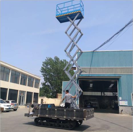 履带式升降机是我们专为野外复杂路况下高空作业设计的一种移动剪叉升降机,它适应环境能力特别强,能在野外无电源,路况复杂的情况下进行高空作业。它采用履带式车轮,加重底盘,由柴油发动机驱动升降机行走,蓄电池做控制和升降电源,通过控制按钮控制驱升降机上升和下降,也可以用柴油发动机做升降动力通过手动液压操作杆控制升降机升、降,蓄电池由外接电源充电或通过柴油发动机带动发电机充电。履带式升降机采用加重底盘,工作时,不需要支腿,在升降机升起后,不需要不把升降机收起即可行走,极大的提高了工作效率,同时,它的履带式车轮,增加了与大地接触的面积,在野外泥泞道路上也可行走和工作,是石油勘探、野外通信线路安装施工等野外高空作业的理想设备。