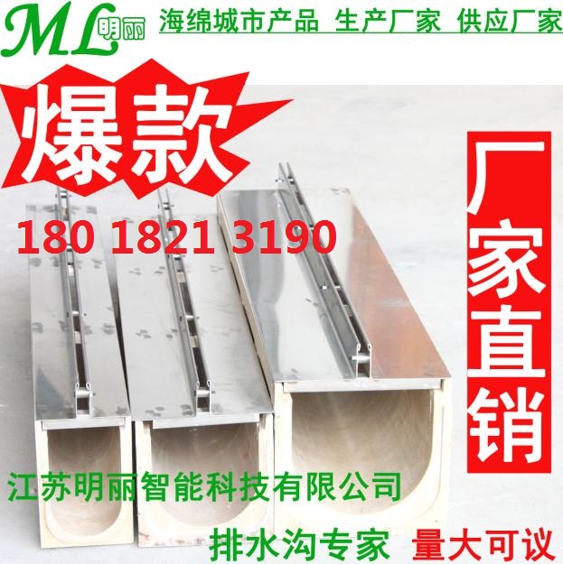 本公司为15年专业模压产品生产厂家,所生产的线性树脂混凝土排水沟生产工艺为模压,相较与其它生产工艺,产品抗老化、抗冻性、抗腐蚀性、稳定性及水吸收渗透性更高;表面光滑、承载能力更强等优点,因此运用范围十分广泛,能满足不同需求的客户类型。与传统L型排水沟相比,U型断面水流动性强,增强自净能力。盖板材质为不锈钢缝隙、铸铁等,可根据客户需求定做。